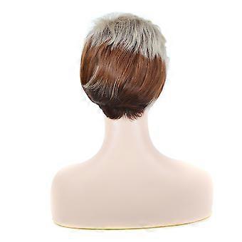 Short Curly Wig Brown White Hair Cover With Bangs For Female Women Headwear Daily Use 1Pcs